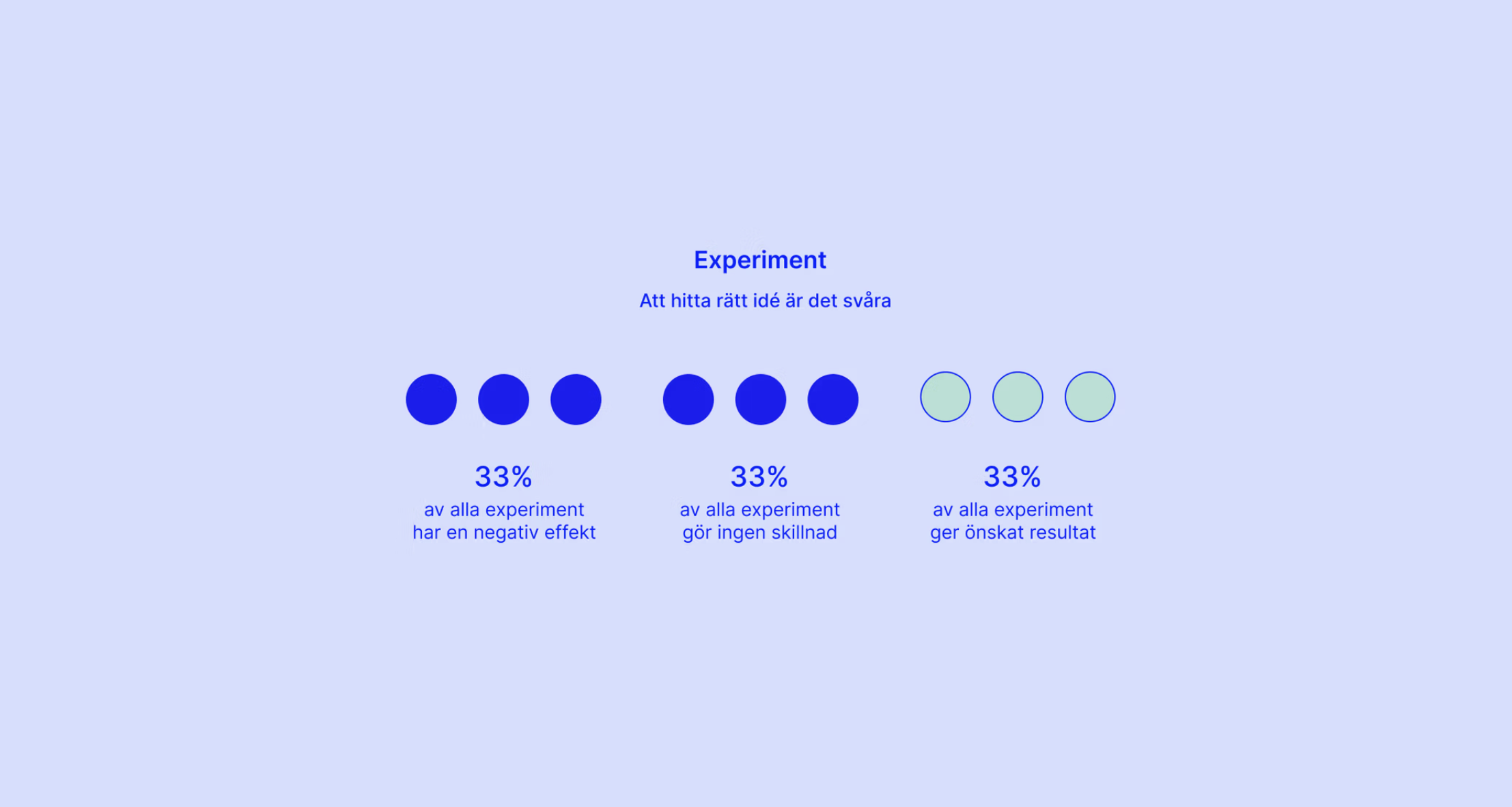 Experiment inom digital produktutveckling är en systematisk process för att testa hypoteser, validera antaganden, förstå användarbeteende och utvärdera potentiella förändringar av en produkt. Metodiken bygger på att sätta tydliga mål, designa tester med mätbara resultat och analysera resultat för att informera datadrivna beslut - och lära oss vad som fungerar och inte.